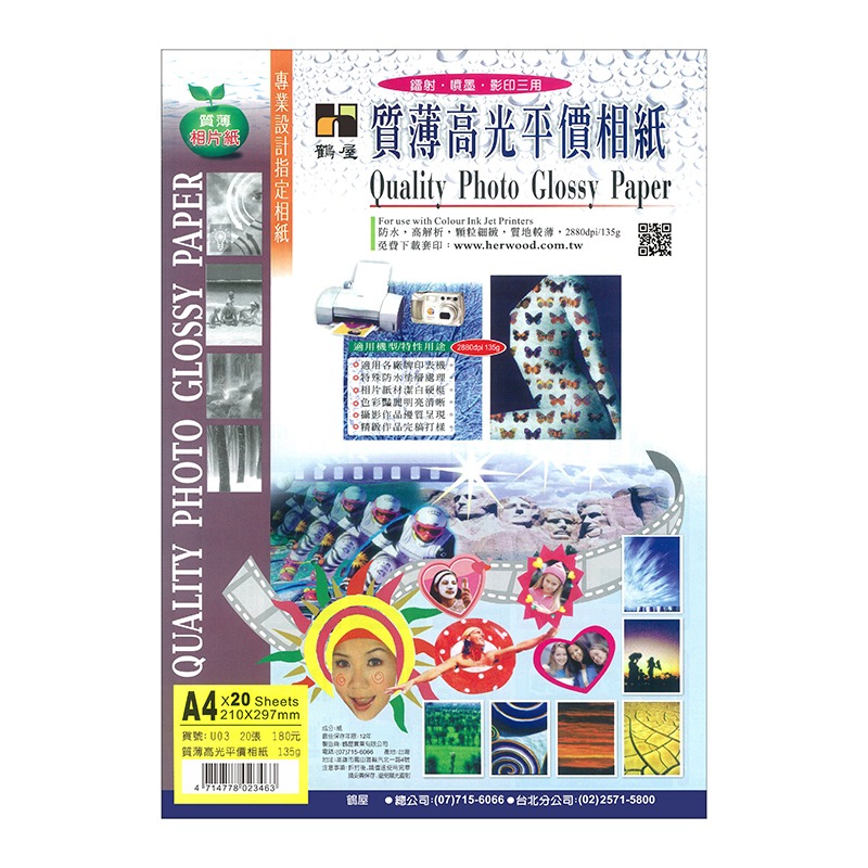 鶴屋 U03 A4 質薄高光相片紙