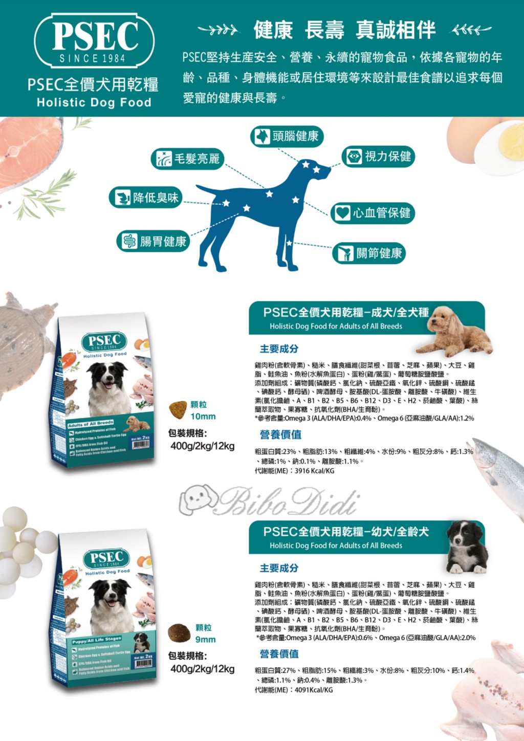 毛球寵物 PSEC全價犬狗糧-幼犬 成犬 低敏飼料 爆毛鱉蛋 高適口性 挑嘴狗 12kg 另有1kg 分裝包