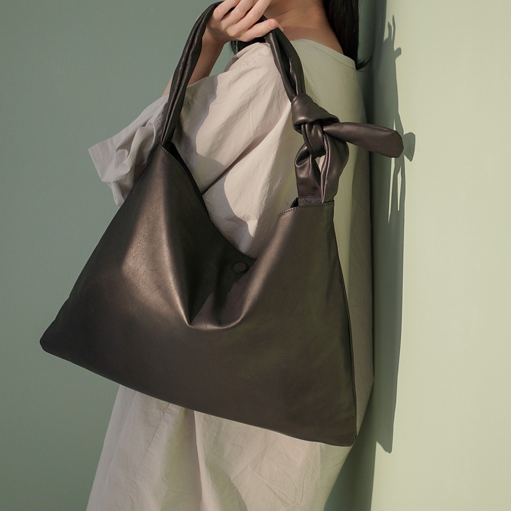 supportingrole 極簡結飾真皮托特包側背包 黑