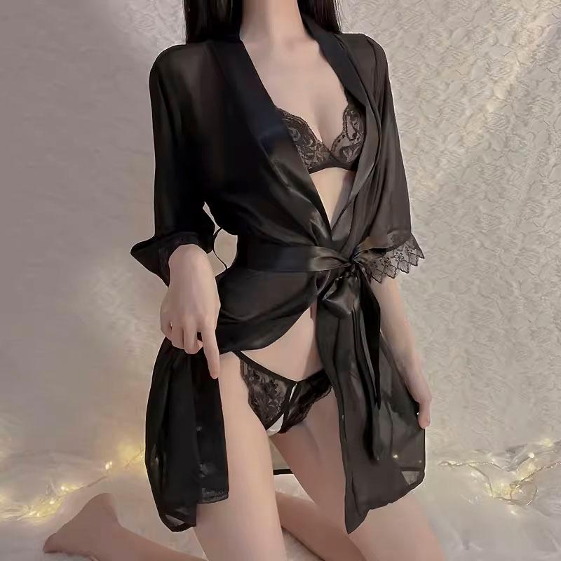• 黑色浴袍+內衣褲