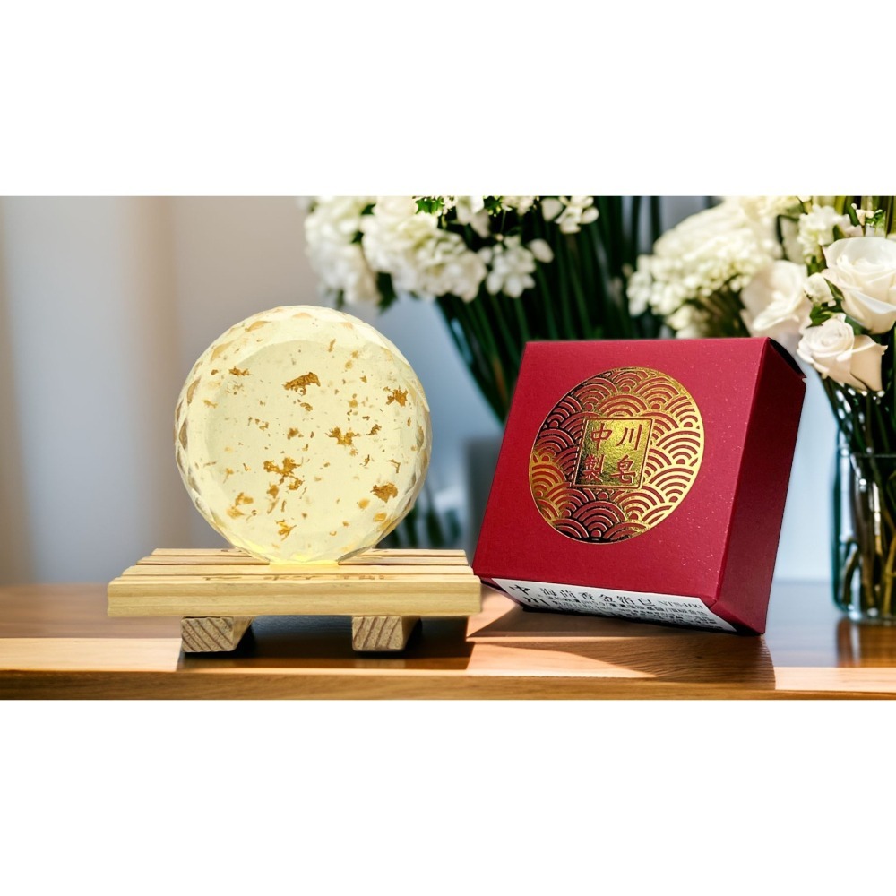 以細工慢做的作皂職人態度,採用麩胺酸(谷氨酸)鹽晶,以海茴香植萃精華取代純水,導入純度達98%的金箔,弱酸pH5.9,海茴香金箔皂,如水晶玻璃般純淨剔透,屬於高濃度胺基酸金箔皂,澄淨無暇,用一次就有感。