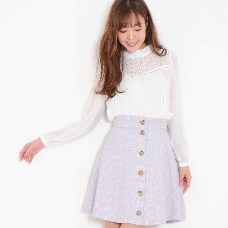 日本全新吊牌專櫃正品Dazzlin氣質小香風格紋復古傘裙鈕扣半身裙
