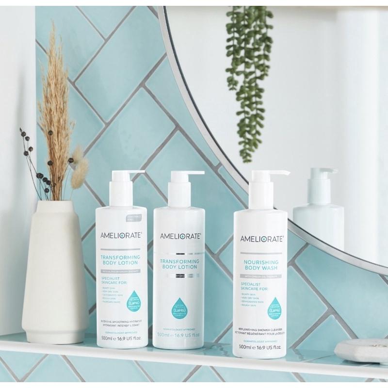 全新現貨,購於英國,無中文標籤,100%正品 🌸AMELIORATE身體乳液 Transforming Body Lotion  500ml -輕盈的日常潤膚乳液,專為毛囊角質化粗糙,乾燥和凹凸不平皮膚設計。既能去角質,又能滋潤肌膚。 -含有LaH6保濕複合物、α-羥基酸,可去除和更新表皮細胞,同時將水分吸收到皮膚中,加上甜杏仁油可軟化和保護皮膚,增強其天然保濕屏障。豐富而柔潤的保濕霜利用乳酸的去角質功效清除死皮細胞,使皮膚重塑表面,並促進更新和修復。 -適合所有膚質。適合3歲以上的兒童。可安全使用於臉部。 🌸AMELIORATE柔滑身體去角質Smoothing Body Exfoliate  50ML/ 150ML -含有物理性及果酸去角質,配合LaH6保濕複合物加上乳油木果及可可脂,去角質之外,還能深層保濕。 使用方式:每週使用 2-3 次。 淋浴或浸浴前,按摩於乾燥肌膚。 在肌膚上停留數分鐘,以確保產品發揮最佳功效,然後再沖洗乾淨。 若要逐步改善肌膚紋理和狀況,洗完澡後搭配AMELIORATE身體乳液使用。 警告: 如發生刺激,請立即停止使用。 避免接觸眼睛。 如果產品進入眼睛,請立即用溫水沖洗乾淨。 曬傷警告: 本產品含有 Alpha Hydroxy Acid (AHA),可能會增加皮膚對陽光的敏感度,尤其是曬傷的可能性。 在使用本產品期間及之後的一週內,請使用防曬霜、穿戴防護衣物,並限制陽光曝曬。 🌸滋潤沐浴露 Nourishing Body Wash 200ml -無皂配方並含有LaH6皮膚保濕複合物,滋潤並提振肌膚,改善肌膚角化症現象,溫和地清潔,柔軟和滋潤肌膚,使皮膚光滑柔軟。 包裝無盒子,下單前請知悉!效期26後