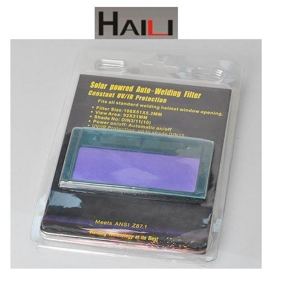 外框尺寸:110X50X8MM 內框尺寸:90X34MM 亮度3 暗度11 物美價廉 能和各種電焊面罩配合使用,滿足你用普通面罩也能自動變光的需求,該產品可以放在普通電焊面罩上,經濟實用,也可以配套使用。不用更換電池、太陽能的接收板自動充電。 為方便安全運送,會先拆除外包裝後盒裝出貨