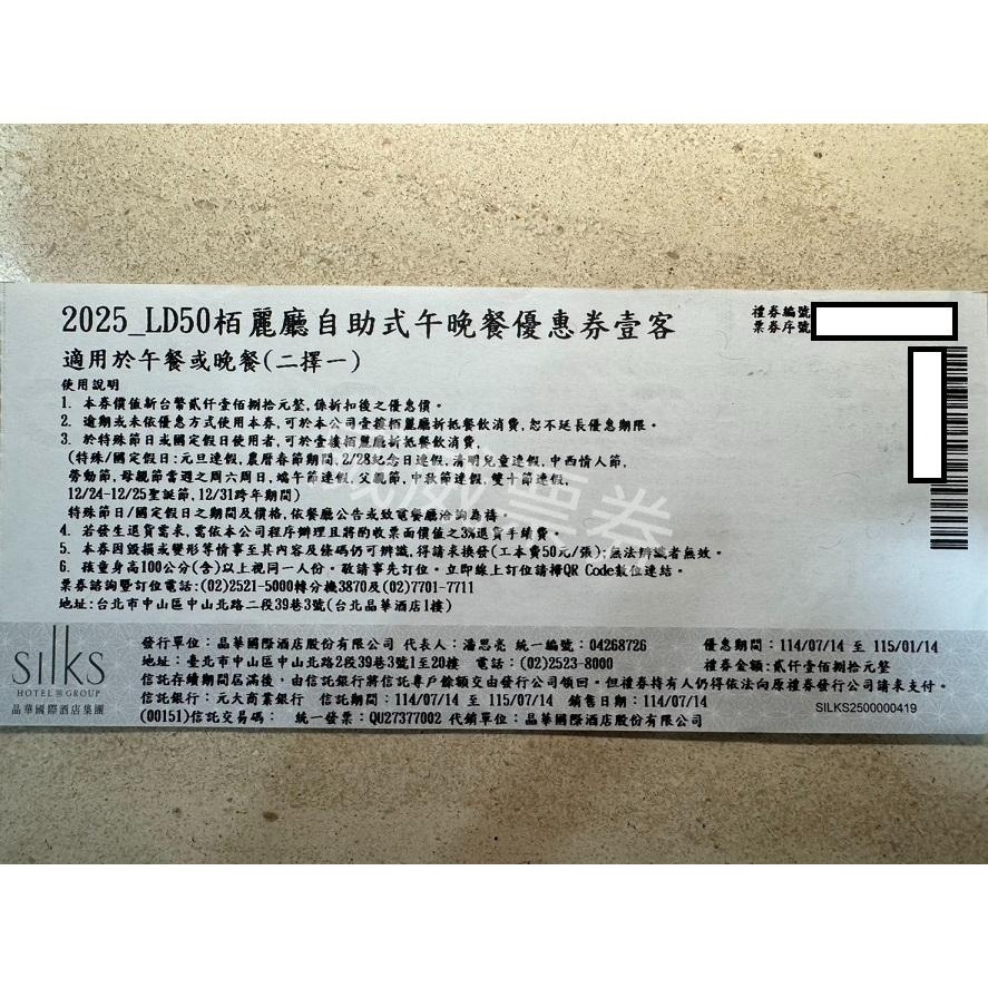 台北晶華酒店 栢麗廳 自助式午晚餐一客