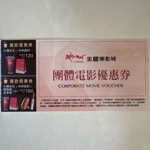 本券可兌換一般廳2D電影票壹張,並可加價使用於特殊影廳、數位3D及片長150分鐘(含)以上之影片,加價金額請洽影城售票櫃台。