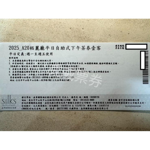 週一至週五可於台北晶華酒店栢麗廳自助餐廳《1樓》享用自助式下午茶壹客
