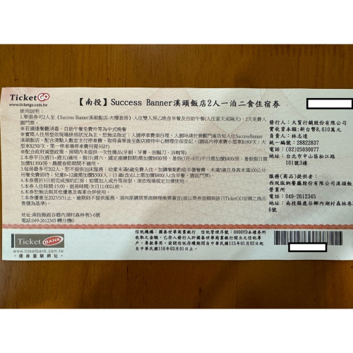 7.本券優惠至2027/03/31止,逾期則不提供服務,須向原購買票商辦理換票事宜(須以票券面額與該日TicketGO官網之商品售價為基準)。