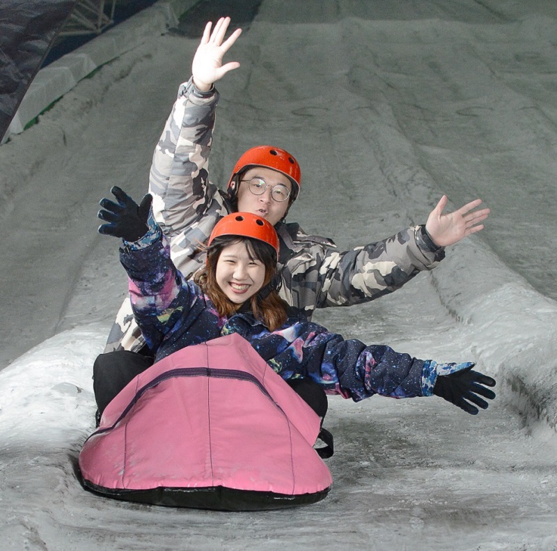 購買樂園門票,免費入場體驗:乘坐雪毯滑雪趣、親子戲雪區