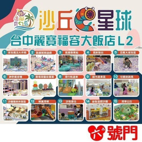 1、每張票券可一大一小全區全日𣈱玩台中麗寶【沙丘星球】(六歲以下需全程陪同一位大人入場)。