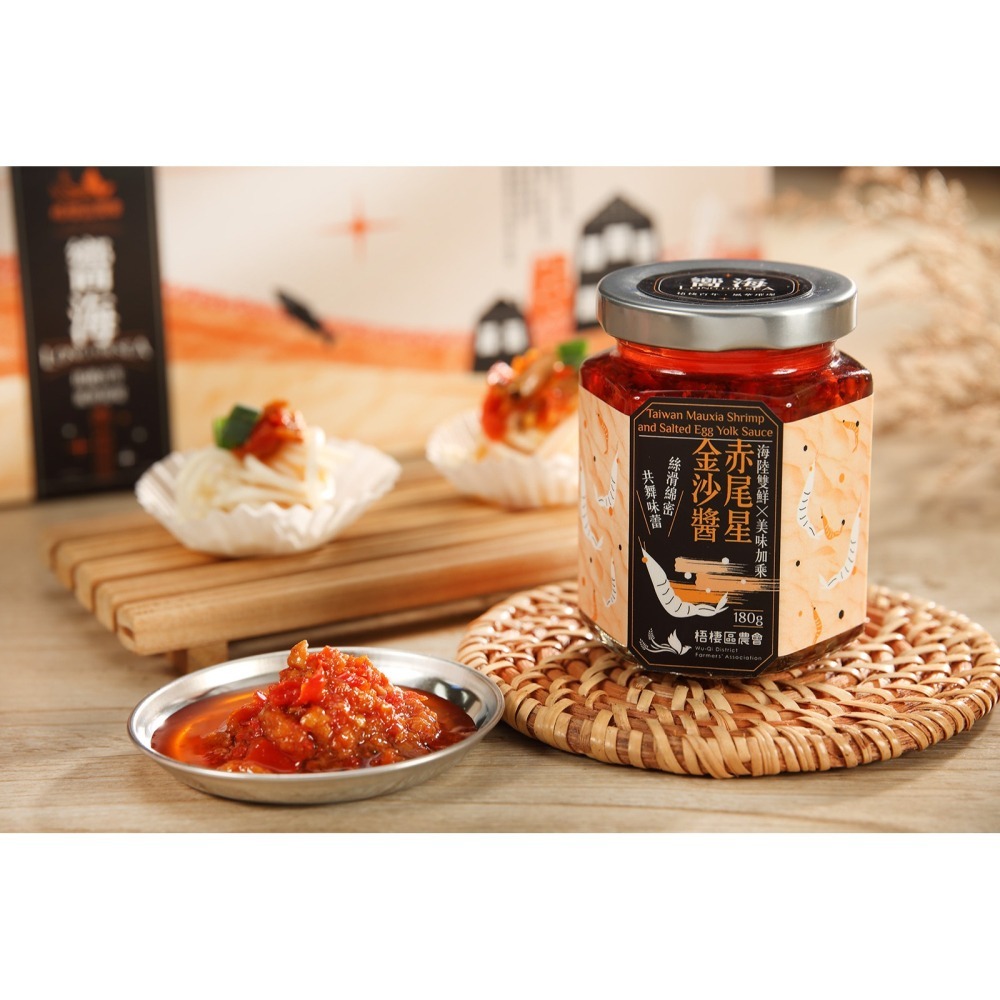 以產品故事為發想,堆疊著三種不同質地、顏色的海,營造出梧棲海港物產的豐富及醬料多層次的口感。海波中呈現梧棲的家鄉樣貌,象徵著以這些鮮味帶出家的味道,有如海上的北極星,用味覺引導眾人回到心中溫暖的故鄉。