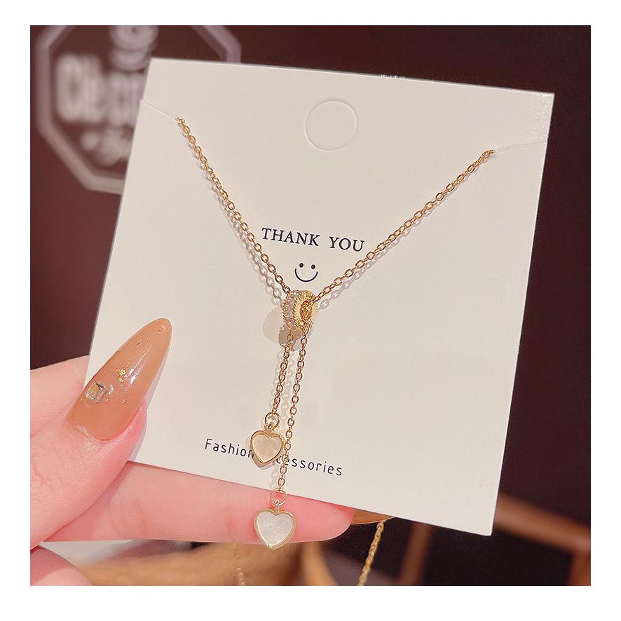 項鏈 頸鍊 韓版 鈦鋼 小橙子🍊 設計感 流蘇 雙愛心 項鍊 女網紅同款 個性氣質 桃心吊墜 鎖骨鏈 頸項鍊女 短項鍊女