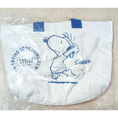 全新Snoopy史努比輕量型正背面白底藍圖開口有拉鍊托特包一個