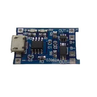 TP4056鋰電池充電與保護一體板1A 充電+保護 2合1 18650 電源模組 產品特點: ★ 本模組使用非常成熟的充電晶片TP4056,週邊電路簡單,保護性能好,充電精度高。 ★ 本模組完全機械自動化加工,全貼片零件製造,每個模組出貨之前都會測試,可靠性高。 ★ 本模組電流可自行調節,只要更改電路板中的固定電阻,就能更改輸出致100mA-1000mA,非常方便。