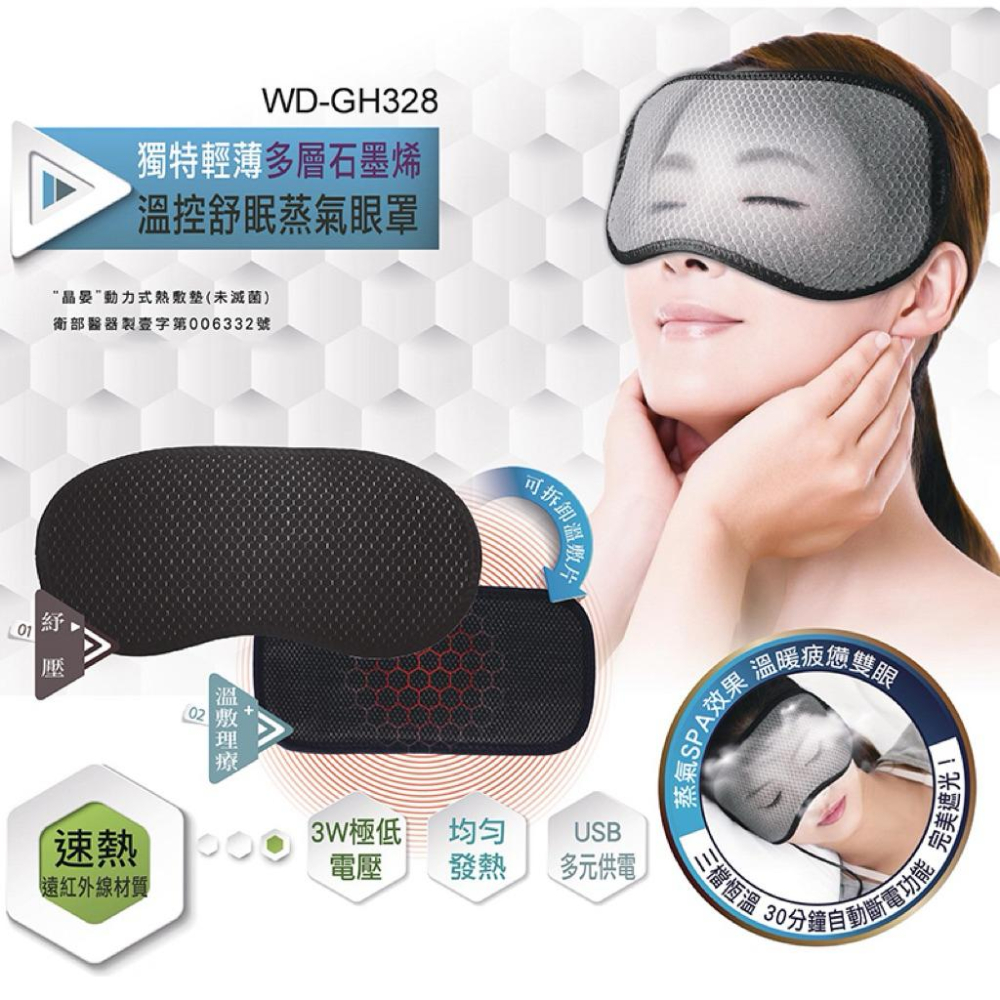 ❰免運❱ WellDay晶晏 石墨烯熱敷眼罩 熱敷眼罩 WD-GH328 晶晏熱敷墊 舒緩眼部疲勞 台灣製造