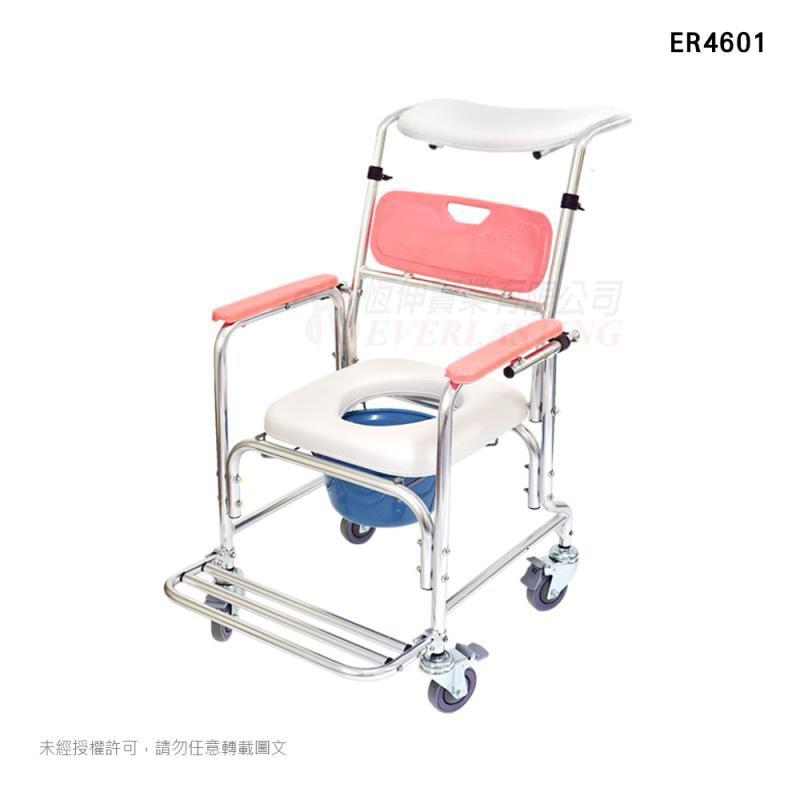 ❰免運❱ 恆伸 ER4601 鋁合金有輪固定便椅 後躺式 便盆椅 有輪便盆椅 固定式 便器椅 銀髮輔具 洗澡洗頭椅