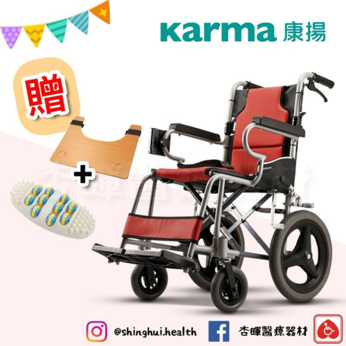 ❰免運❱ Karma 康揚 KM-2500 贈桌板 輕量化鋁合金輪椅 小輪 輪椅B款 折疊輪椅 輔具補助 輪椅 銀髮輔具