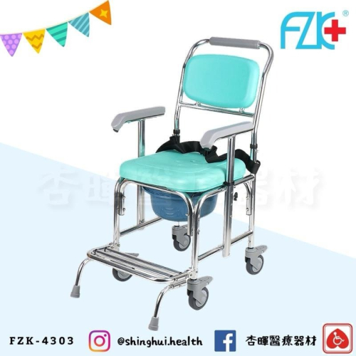 ❰免運❱ FZK 富士康 FZK-4303 固定有輪便盆椅 附輪 便盆椅 扶手 原廠公司貨 洗澡椅 坐便椅