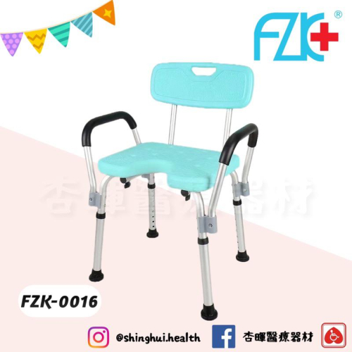 ❰免運❱ FZK 富士康 FZK-0016 U型沐浴椅 洗澡椅 鋁合金 防滑腳墊 可調高低 有背有扶手 輔具 淋浴洗澡