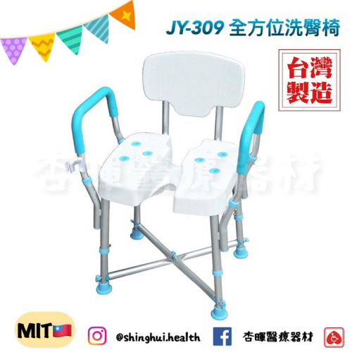 ❰免運❱ 晉宇 全方位洗臀椅 JY-309 鋁合金 台灣製造 可調高低 沐浴椅 洗澡椅 免工具 ✅台灣製造🇹🇼 ✅實體店面 ✅原廠公司貨 ✅合法藥商許可 📍規格 ▫️材質:鋁合金、橡膠止滑墊 ▫️總高:67.5~77.5cm ▫️總寬:40~41.5cm ▫️總長:61cm ▫️重量:4kg ▫️限重:227kg ▫️保固:正常使用,骨架一年保固 ▫️產地:台灣 📍產品特色 ▫️腳管五段式調整 ▫️表面含止滑紋路及排水設計 ▫️橡膠材質 ▫️防滑腳塞 ▫️矽膠材質,防霉抗菌 【販賣藥商許可執照】 ✔️販售業者資料: ✔️許可證字號:雲縣藥販 字第6239012863號 ✔️公司名稱:杏暉醫療器材行 ✔️地址:雲林縣斗六市雲林路二段623號 ✔️諮詢專線:05-5370788 📍服務時間:週一至六8:30-17:00 📍消費者使用前應詳閱產品說明書