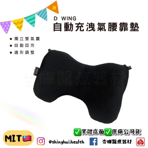 ❰免運❱ D WING自動充洩氣腰靠墊 空氣 泡棉 充洩氣程度可調 台灣製造 日本設計 ✅日本設計🇯🇵台灣製造🇹🇼 ✅實體店面 ✅原廠公司貨 ✅合法藥商許可 自動充氣裝置 充洩氣程度隨意調整 💜自動充洩氣腰靠墊 用空氣適形,貼和背部曲線 打開氣囊自動回充 轉開洩氣閥調整厚薄度 適用於辦公室、輪椅、開車等長時間久坐 各種場合全力應援你的背! 📍規格說明 D WING自動充洩氣腰靠墊 ▫️材質:背靠-聚氨酯泡棉,布套-聚酯纖維 ▫️含布套尺寸:寬52x長31x厚6cm (空氣完全擠出時厚2cm) ▫️重量:370g ▫️產地:日本設計,台灣製造 【販賣藥商許可執照】 ✔️販售業者資料: ✔️許可證字號:雲縣藥販 字第6239012863號 ✔️公司名稱:杏暉醫療器材行 ✔️地址:雲林縣斗六市雲林路二段623號 ✔️諮詢專線:05-5370788 📍服務時間:週一至六8:30-17:00 📍消費者使用前應詳閱產品說明書