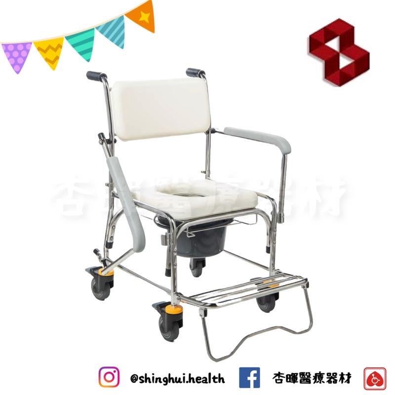 ❰免運❱ 均佳 JCS-305 不銹鋼洗澡便器椅 拆手型 附輪 便盆椅 不鏽鋼 洗澡椅 輔具 銀髮 機構 沐浴椅
