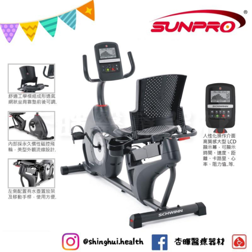 ❰免運❱ Schwinn 510R 輕商用斜背健身車 健身器材 原廠保固 肌耐力 健身房設備 有氧運動 健身機 臥式健身 ✅實體店面 ✅原廠公司貨 ✅合法藥商許可 💜小型產品貨運配送(偏遠地區運費另計) 💜含運送及組裝(若配送地區為花蓮、台東或偏遠地區,運費需另外計算) 💜專案團隊 工程負責1員,運送裝配3-4員,視商品重量積材派員。 ▫️內建13組運動程式,含1組手動、10組預設路徑、1組體能訓練、1組目標時間..等運動程式 ▫️前、後雙扶握工學手把及自動平衡踏板設計,輕鬆使用 ▫️Bluetooth智能系統與Explore WorldTM應用程序同步與Zwift®兼容應用程序可體驗虛擬課程路線探索與虛擬世界中的其他人互動 https://s-cf-tw.shopeesz.com/file/tw-11134208-7r98r-lmh7fvp9hrixb9 https://s-cf-tw.shopeesz.com/file/tw-11134208-7r98w-lmh7qfejvtllae https://s-cf-tw.shopeesz.com/file/tw-11134208-7r98p-lmh7qfetslnff7 https://s-cf-tw.shopeesz.com/file/tw-11134208-7r98t-lmh7qfejx86171 【販賣藥商許可執照】 ✔️販售業者資料: ✔️許可證字號:雲縣藥販 字第6239012863號 ✔️公司名稱:杏暉醫療器材行 ✔️地址:雲林縣斗六市雲林路二段623號 ✔️諮詢專線:05-5370788 📍服務時間:週一至六8:30-17:00  📍消費者使用前應詳閱產品說明書