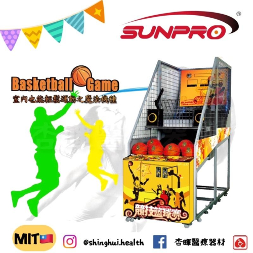 ❰免運❱ SUNPRO 電子搖擺投籃競賽機 SP-990 籃球機 搖擺式 單人/連線 闖關 休閒舒壓 公司 學校 休閒場所 ✅實體店面 ✅原廠公司貨 ✅合法藥商許可 ✅開立電子發票,安心可靠 💜含運送及組裝(若配送地區為花蓮、台東或偏遠地區,運費需另外計算) 💜專案團隊 工程負責1員,運送裝配3-4員,視商品重量積材派員。 📍功能品質說明 ▫️單人/連線比賽皆可,最多8台連線,第2關開始籃框左右擺動,共5關卡、遊戲時間、過關分數皆可隨意供 調整選擇.每台附8顆籃球 ▫️唯一獨創世界專利,每台皆是主機功能,隨時可切換主機子機交替運用 ▫️根據人體工學設計改版新款,外觀絢麗,整合最佳適當標準尺寸,擺放空間大利用,無任何限制空間, ▫️增加搖滾重低音喇叭,加強聲音效果,搖滾嘻哈吸引力,白鐵不鏽鋼製籃網設計,所有年輕人的最愛 ▫️可摺疊式構造設計,安裝方便迅速,達到省時省力,設定最簡單易懂,大人小孩都容易上手 ▫️100%台灣製造絕非大陸製品,設計生產完全符合ROHS/WEEE以 及 多項環保安規,讓您動的健康用的安心 並保有5000萬產品責任險及一年免費保固•(非天災地變人爲因素) ▫️創新設計高級黑紋中斜板,高貴耐磨不易髒,無噪音設計且加快落球速度,增加高分機率. ▫️上頭罩,錢道,籃板LED藍燈,皆爲另購品,可隨意搭配選購 ▫️引1進時下最流行的銀灰色,滿足機台多色化的需求,老少咸宜青少年學生最IN的競飆運動休閒機台. ▫️內部加裝防電斷路器/靜電隔離變壓器,電壓110v耗電量超低,給您最強的安全品質保障及服務. ▫️適合機關團體、各級學校、公司行號、休閒場所 ▫️長寬高尺寸:238cmx 95cmx 218cm 【販賣藥商許可執照】 ✔️販售業者資料: ✔️許可證字號:雲縣藥販 字第6239012863號 ✔️公司名稱:杏暉醫療器材行 ✔️地址:雲林縣斗六市雲林路二段623號 ✔️諮詢專線:05-5370788 📍服務時間:週一至六8:30-17:00  📍消費者使用前應詳閱產品說明書