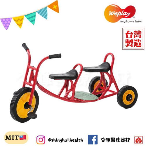 ❰免運❱ Weplay 雙人腳踏車 原廠認證 台灣製造 腳踏車 戶外運動 幼教用品 遊戲 兒童用品 協調平衡訓練 幼稚園 小孩 ❤️專為3~6歲孩子發展需求設計的雙人車款,充滿趣味與挑戰性。 專為3~5歲孩子發展需求設計的三輪車,踩踏間能促進孩子的動作發展能力及平衡感,建立孩子空間方位概念,榮獲國際多項專利及安全測試。 ✅台灣製造🇹🇼  ✅實體店面 ✅原廠公司貨 ✅合法藥商許可 ✅商檢字號M34979合格 https://s-cf-tw.shopeesz.com/file/tw-11134208-7r98p-lnmf3s30zxgd1b https://s-cf-tw.shopeesz.com/file/tw-11134208-7r98t-lnmfi6no38l503 https://s-cf-tw.shopeesz.com/file/tw-11134208-7r991-lnmfi6oi20bh08 https://s-cf-tw.shopeesz.com/file/tw-11134208-7r98w-lnmfi6os30op77 https://s-cf-tw.shopeesz.com/file/tw-11134208-7r98y-lnmfi6p217i162 https://s-cf-tw.shopeesz.com/file/tw-11134208-7r98y-lnmfi6pc0sgtee 【販賣藥商許可執照】 ✔️販售業者資料: ✔️許可證字號:雲縣藥販 字第6239012863號 ✔️公司名稱:杏暉醫療器材行 ✔️地址:雲林縣斗六市雲林路二段623號 ✔️諮詢專線:05-5370788 📍服務時間:週一至六8:30-17:00  📍消費者使用前應詳閱產品說明書