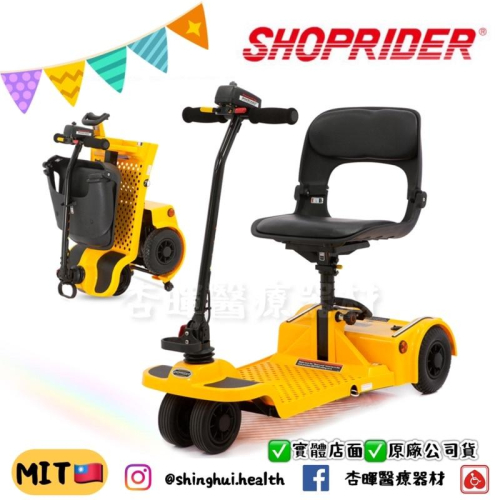 ❰免運❱ 必翔 TE-FS777 電動代步車 折疊收納款 輕巧 摺疊 便攜 電動車 銀髮 輔具 SHOPRIDER 🔸歡迎私訊與小編討論喔! ✅台灣製造🇹🇼 ✅實體店面 ✅原廠公司貨 ✅合法藥商許可 📍產品介紹 ▫️榮獲台灣精品獎肯定 ▫️車體五秒迅速折疊展開設計 ▫️站立式折疊,不佔空間 ▫️輔助輪設計移動方便 ▫️適合旅行、室內購物使用 消費者使用前應詳閱產品說明書 📍醫療器材許可證 "必翔"電動代步車 許可證核准字號:衛署醫器製字第002428號 廣告許可字號:衛部器廣字第10907005號 製造廠名稱:必翔實業股份有限公司 製造廠地址:新竹縣新豐鄉新和路108號 製造日期:以商品標示卡上日期為準 有限期間(或保存期限):以商品標示卡上日期為準 產地:台灣 許可證查詢網址:衛生福利部食品藥物管理署 http://www.fda.gov.tw/MLMS/H0001.aspx 【販賣藥商許可執照】 ✔️販售業者資料: ✔️許可證字號:雲縣藥販 字第6239012863號 ✔️公司名稱:杏暉醫療器材行 ✔️地址:雲林縣斗六市雲林路二段623號 ✔️諮詢專線:05-5370788 📍服務時間:週一至六8:30-17:00 📍消費者使用前應詳閱產品說明書