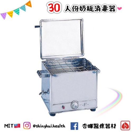 ❰免運費❱ 30人份奶瓶消毒器 不鏽鋼 YH107 台灣製造🇹🇼 YAHO 耀宏 原廠公司貨 實體店面 除菌消毒 不銹鋼 ✅台灣製造🇹🇼 ✅實體店面 ✅原廠公司貨 ✅合法藥商許可 🔸實體店面,請安心購買🔸 🔸超商一件最多一台🔸 💜30人份奶瓶消毒器 📍規格: ▫️長40X寬34X桶深25cm。 ▫️內徑長39.3x寬33.5x桶深22.5cm。 ▫️內籃格6x6cm。 ▫️桶身採用0.8mm不銹鋼板。 ▫️附電源線,110V電壓。 ▫️附一組水龍頭。 ▫️所有尺寸5% 📍材質: ▫️整體為不鋼材質。 🔸顏色以實品為準 【販賣藥商許可執照】 ✔️販售業者資料: ✔️許可證字號:雲縣藥販 字第6239012863號 ✔️公司名稱:杏暉醫療器材行 ✔️地址:雲林縣斗六市雲林路二段623號 ✔️諮詢專線:05-5370788 📍服務時間:週一至六8:30-17:00 📍消費者使用前應詳閱產品說明書