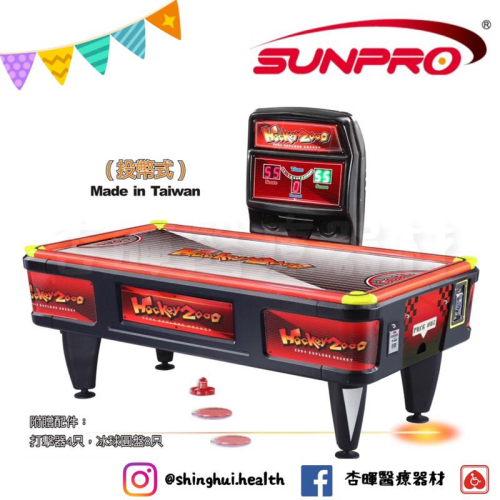 ❰免運❱ 三普 SP-HKL018 Table football 商用級娛樂曲棍球檯 投幣式 曲棍球臺 遊樂場 親子遊戲 桌遊 電子遊戲 ✅實體店面 ✅原廠公司貨 ✅合法藥商許可 💜含運送及組裝(若配送地區為花蓮、台東或偏遠地區,運費需另外計算) 💜專案團隊 工程負責1員,運送裝配3-4員,視商品重量積材派員。 📍附贈配件。 打擊器4具 。冰球圓盤8貝 ▫️達到全身體能運動及促進末梢神經發達.老少咸宜,增加頭腦判斷能力,訓練視覺敏銳. ▫️遊戲人數可兩人或多人分組對抗比賽,娛樂姓十足. ▫️機身採高級ABS耐撞擊塑料+鑄鐵烤漆處理,外型美觀,經久耐用。 ▫️桌面採壓克力材質及多彩燈光變化效果,耐刮抗磨損. ▫️設置有環場音樂及冰球浮盤撞擊邊框轉換音響效果 ▫️大型LED文字顯不視窗,可顯示時間與分數計. ▫️合乎氣動力學,強力鼓風機,送風力強,推盤平滑流暢. ▫️左右雙投幣器設計,使用方便,大型落地腳座可調整水平高低. ▫️機體重量:175KG ▫️電源需求:110V ▫️機體尺寸:長230cmx寬137mx高161cm https://s-cf-tw.shopeesz.com/file/tw-11134208-7qul7-livcumcz20ci7c 【販賣藥商許可執照】 ✔️販售業者資料: ✔️許可證字號:雲縣藥販 字第6239012863號 ✔️公司名稱:杏暉醫療器材行 ✔️地址:雲林縣斗六市雲林路二段623號 ✔️諮詢專線:05-5370788 📍服務時間:週一至六8:30-17:00  📍消費者使用前應詳閱產品說明書