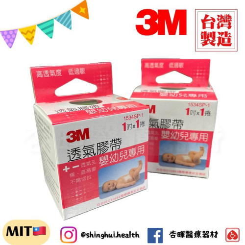 ❰現貨❱ 3M 嬰幼兒專用透氣膠帶 1吋x1卷 2卷 1534SP-1 透氣 低過敏 嬰兒膠 紙膠 3M