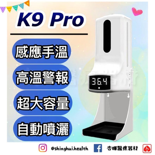 ❰現貨❱ K9 pro 自動酒精噴霧機 限時優惠 溫度感應 語音警報 酒精噴霧機 ❗️主機+腳架請選擇蝦皮宅配❗️ ✅實體店面 ✅原廠公司貨 ✅合法藥商許可 ✅12國語言可調 ✔️非充電式需插電使用 🚚因材積限制主機+腳架無法超商,只支援宅配感謝您 📍產品型號:K9 pro ▫️測溫精度:精度正負0.2度C(34~45度C需放置工作環境30分鍾後開始使用) ▫️報警方式:異常自動報警,閃光+聲音嘀嘀嘀 ▫️測溫距離:5cm~10cm自動測溫 ▫️顯示:數字顯示 ▫️傳輸口:USB type c接口 ▫️可裝容量:1000ml ▫️安裝方式:掛壁、支架固定 ▫️工作溫度:10度c~40度c ▫️測量範圍:0~50度c ▫️待機方式:非工作時間5s待機,紅點動態循環 ▫️輸入電壓:DC 5V 1500MA可內置4節3號電池供電 ▫️外型尺寸:119X133X279mm ▫️出液方式:噴霧 🌟功能按鍵操作說明:共7種模式 🔹調溫度單位:C攝氏度,F華氏度 🔹調工作模式:b人體模式,c計數模式,s表面模式注意測手溫選b人體模式 🔹調報警值:36度至39度(手溫建議調37度報警手) 🔹調音量:五檔音量可調整 🔹調整語言:12國語言可調(中文是CH) 🔹調整酒精噴霧量:E0.1秒至E2.0秒調出液量 🔹回到測溫界面(顯示0.00) ⚠️產品噴霧為光感感應,未放置黑盤子可能會反光照射感應處,讓產品一直感應噴霧。 【販賣藥商許可執照】 ✔️販售業者資料: ✔️許可證字號:雲縣藥販 字第6239012863號 ✔️公司名稱:杏暉醫療器材行 ✔️地址:雲林縣斗六市雲林路二段623號 ✔️諮詢專線:05-5370788 📍服務時間:週一至六8:30-17:00 📍消費者使用前應詳閱產品說明書