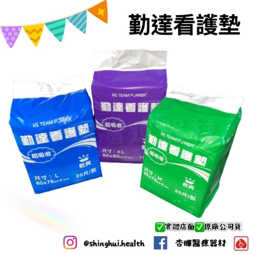 ❰現貨免運❱ 勤達 看護墊 M / L / XL 乾爽透氣 超吸收 保潔墊 臥床 醫院 診所 寵物保潔墊 ❗️請留意超取上限數量❗️ ❗️成箱或宅配請聊聊小編❗️ ✅實體店面 ✅原廠公司貨 ✅合法藥商許可 📍規格(尺寸正負3cm) ▫️M : 45x70cm 20片/包 綠色💚 (超取限6包) ▫️L : 60x75cm 20片/包 藍色💙 (超取限4包) ▫️XL : 60x90cm 10片/包 紫色💜(超取限3包) 📍產品詳列 ▫️主要成份:不纖布、吸水紙、紙漿、高分子吸收體、PE膜 ▫️產品用途:防止床墊沾污。 ▫️使用說明:直控鋪於床上,防止床單沾污。 ▫️保存方式:請置於陰涼通風處,避免陽光直射。 ▫️注意事項:使用後請勿丟入馬桶,依可燃燒廢棄物做處理。 ▫️保存期限:五年 ▫️製造日期;如包裝標示 ▫️產地:中國 ▫️進口商/委製商:勸達醫療器材股份有限公司 ▫️地址:新北市板橋區民生路一段33號22樓之1 ▫️電話:(02) 2950-0388 🥇本產品由台灣勤達公司委託柯恒公司專業生產製造 所有生產原料皆通過SGS安全檢測 【販賣藥商許可執照】 ✔️販售業者資料: ✔️許可證字號:雲縣藥販 字第6239012863號 ✔️公司名稱:杏暉醫療器材行 ✔️地址:雲林縣斗六市雲林路二段623號 ✔️諮詢專線:05-5370788 📍服務時間:週一至六8:30-17:00 📍消費者使用前應詳閱產品說明書