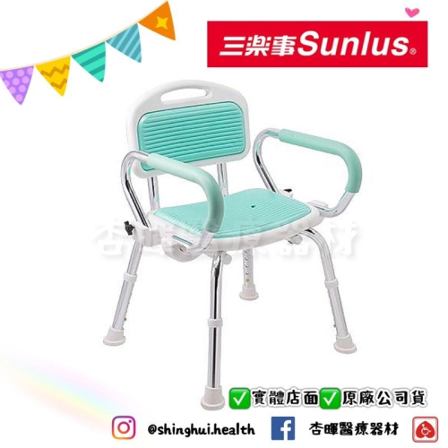 ❰免運❱ 三樂事 Sunlus 扶手收折式軟墊洗澡椅 沐浴椅 SP5605 鋁合金 可調高低 掀手 軟墊 輔具 補助 ✅日本御用款式🇯🇵 ✅實體店面 ✅原廠公司貨 ✅合法藥商許可 📍產品特色 ▫️扶手可掀 ▫️安全扶手設計,方便起坐 ▫️高度調整設計 ▫️舒適軟墊設計,方便好拆洗 ▫️椅背軟墊設計,舒適久坐不嫌累 📍產品規格 ▫️本體尺寸:44cm x 52cm x 66~76cm ▫️產品材質:本體(鋁)/ 座墊(EVA發泡材質) ▫️顏色:綠色 ▫️保固:1年 ▫️產地:台灣🇹🇼 【販賣藥商許可執照】 ✔️販售業者資料: ✔️許可證字號:雲縣藥販 字第6239012863號 ✔️公司名稱:杏暉醫療器材行 ✔️地址:雲林縣斗六市雲林路二段623號 ✔️諮詢專線:05-5370788 📍服務時間:週一至六8:30-17:00 📍消費者使用前應詳閱產品說明書