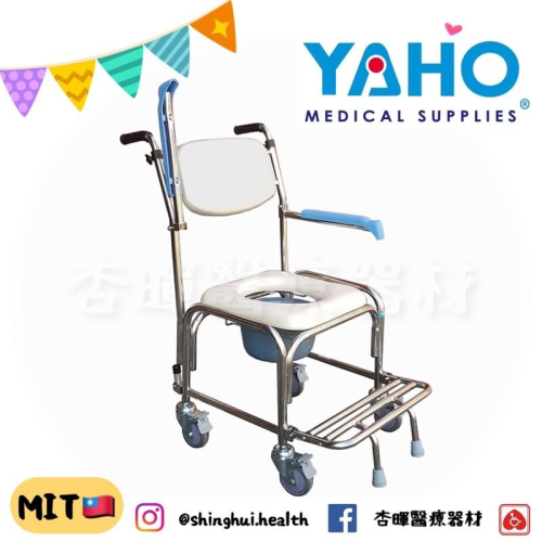 ❰免運❱ YAHO 耀宏 YH125-4 不鏽鋼洗澡椅 掀手 軟背 公司貨 便盆椅 不銹鋼 有輪 輔具 補助 沐浴椅