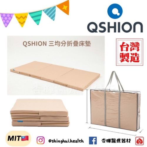 ❰免運❱ QSHION 三折式S形摺疊單人床墊 台灣製造 單人床墊 折疊床墊 露營床墊 全無毒 抑菌防蟎 ⭐️此為預購商品,請先確認是否有現貨 ❣️影片僅提供水洗高纖保養的優點介紹, 主要以賣場商品為主喔!😊 ✅台灣製造🇹🇼  ✅實體店面 ✅原廠公司貨 ✅合法藥商許可 ▫️S形收折,收納面積更小,方便外出攜帶 ▫️床墊尺寸:W 91 x L 188 x H 5 cm 📍商品特色 ▫️透氣呼吸 ▫️抑菌防螨 ▫️水洗快乾 ▫️設計好拆 📍產品規格 ▫️表布:聚酯纖維100% ▫️芯材:聚烯烴彈性體100% ▫️顏色:駝色/藍色 ▫️產地:台灣🇹🇼 📍高科技芯材特性 •來自日本的高分子聚烯烴材料,無毒、高彈性、高透氣、可水洗的特性解決日常困擾。 •能完美解決台灣悶熱潮濕的氣候特性,舒適不長疹。 📍4D高涵氧纖維編織而成,透氣性絕佳,再也不會睡到滿身汗! 📍可水洗 一次解決寶寶尿床、吐奶的困擾,可水洗,終結傳統藏汙納垢的致命缺點,洗後快速乾燥真方便 📍支撐效果好 立體纖維結構,能平均分散壓力,軟硬適中,寶寳睡得好、長的高! 📍洗滌注意事項 1.建議手洗 2.放置在陰涼處風乾 3.請勿烘乾 【販賣藥商許可執照】 ✔️販售業者資料: ✔️許可證字號:雲縣藥販 字第6239012863號 ✔️公司名稱:杏暉醫療器材行 ✔️地址:雲林縣斗六市雲林路二段623號 ✔️諮詢專線:05-5370788 📍服務時間:週一至六8:30-17:00  📍消費者使用前應詳閱產品說明書