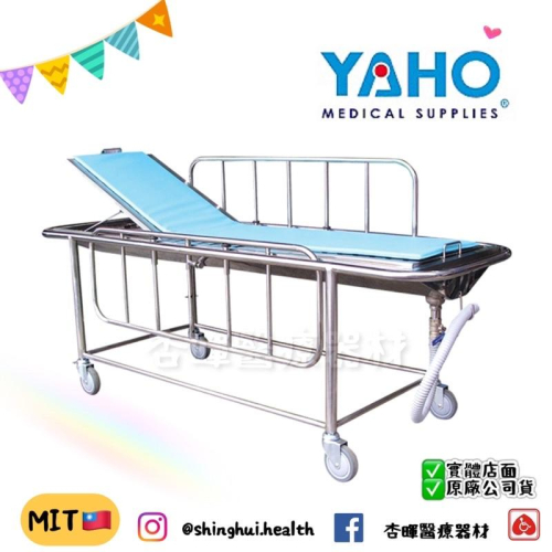 ✅實體店面 ✅原廠公司貨 ✅合法藥商許可 ⚠️因本商品因材積較大,請直接私訊賣場小編 📍YH031-1 不鏽鋼洗澡床(水槽式) ▫️規格: - 長200x寬70x高70cm。 - 床墊尺寸長176x寬38x高2.5cm。 - 柔軟的軟墊躺上去很舒服,而寬大和堅固的構造,可使為病人淋浴時較易接近。 - 協助行動不便之病患洗澡。 - 附欄杆、排水管、軟墊。 - 底部有儲水槽。背部可上昇80o。 - 附高級5" 對角剎車輪。 - 所有尺寸:±5﹪。 ▫️材質: - 整體為不鏽鋼材質。 ★顏色以實品為準 📍中文品名 "耀宏" 沐浴床 (未滅菌) 📍英文品名 "Yao-Hong" Shower Bed (Non-Sterile) 📍效能 限醫療器材管理辦法「非交流電力式病患升降機(J.5510)」第一等級鑑別範圍。 📍衛署醫器字第003148號 📍總公司:耀宏儀器廠有限公司 📍地址:新北市土城區慶祥街59巷11號 📍電話:02-2269-0546 📍傳真:02-2269-1820 📍網址:http://www.yao-hong.com.tw 📍Email: yao-hong@umail.hinet.net 📍製造廠名稱:強盛興企業股份有限公司龜山廠 📍製造廠地址:桃園市龜山區福源村湖山街180巷77弄11號 【販賣藥商許可執照】 ✔️販售業者資料: ✔️許可證字號:雲縣藥販 字第6239012863號 ✔️公司名稱:杏暉醫療器材行 ✔️地址:雲林縣斗六市雲林路二段623號 ✔️諮詢專線:05-5370788 📍服務時間:週一至六8:30-17:00 📍消費者使用前應詳閱產品說明書