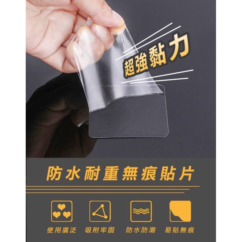 商品特性,免釘鑽、超耐重、防水防潮、無痕不殘膠,安裝便利快速。現在只需把家中物品(收納架等)貼上無痕貼片,一樣可立馬搖身一變,變成超耐重防水無痕收納架。
