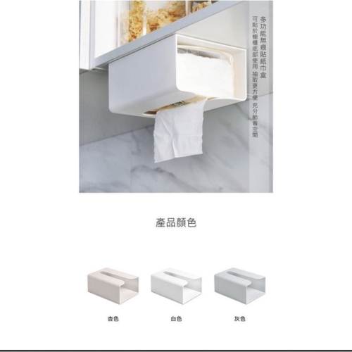 搭配無痕貼可將紙巾盒貼於任何您想貼的地方
