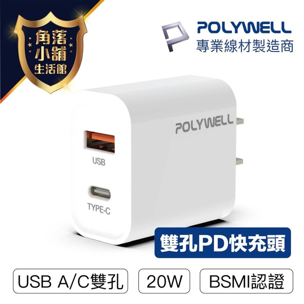 【台灣現貨】 充電器 快充頭 POLYWELL PD雙孔 20W TypeA+C 豆腐頭 USB 適用蘋果iPhone快充