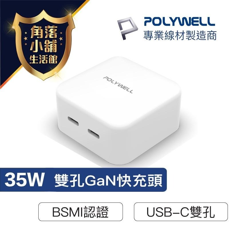 快充頭 充電頭 35W PD雙孔 TYPE-C 快充 充電器 GaN氮化鎵 BSMI認證 POLYWELL 台灣現貨