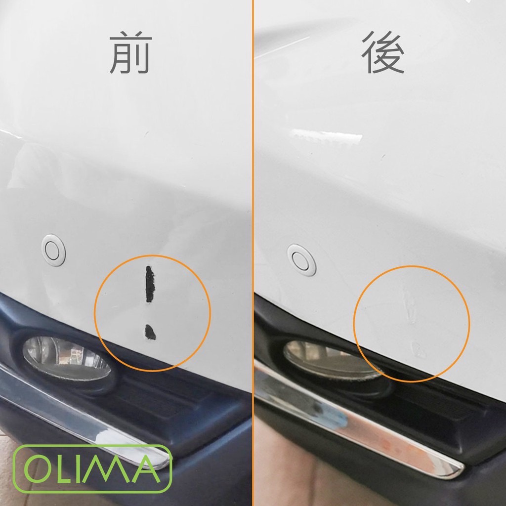.汽車美容對於刮痕處理就是先使用研磨拋光先修掉未見底漆的部分,對於已見底漆的深層刮痕無解,就把這個痛交給OLIMA補漆筆,讓你心裡的痛降到最低