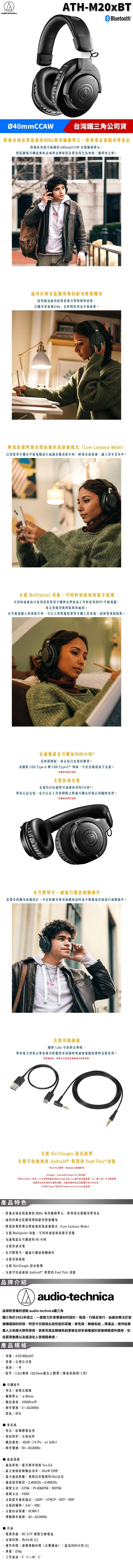 鐵三角 ATH-M20xBT 監聽耳機 藍牙耳機 無線耳機 ATH-M20x 台灣公司貨