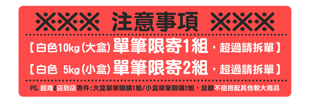 🔻如遇商品購買超量打包體積過大無法超取,需請買家配合更改寄送方式。
