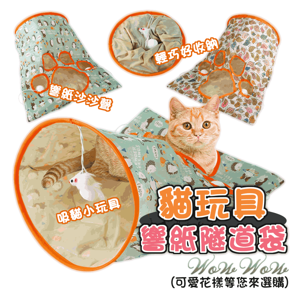 【台灣出貨】❤寵物玩具 響紙貓隧道 折疊貓隧道 貓隧道袋 貓通道 響紙隧道 逗貓玩具 貓咪玩具【WOWWOW】