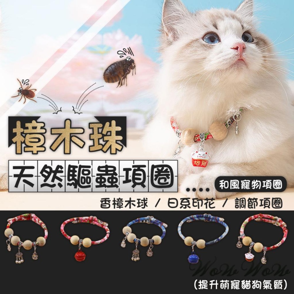 【台灣出貨開發票】❤寵物用品 天然樟木驅蟲項圈 香樟木珠 驅蟲項圈 日式和風 中小型貓狗項圈 寵物項圈【WOWWOW】