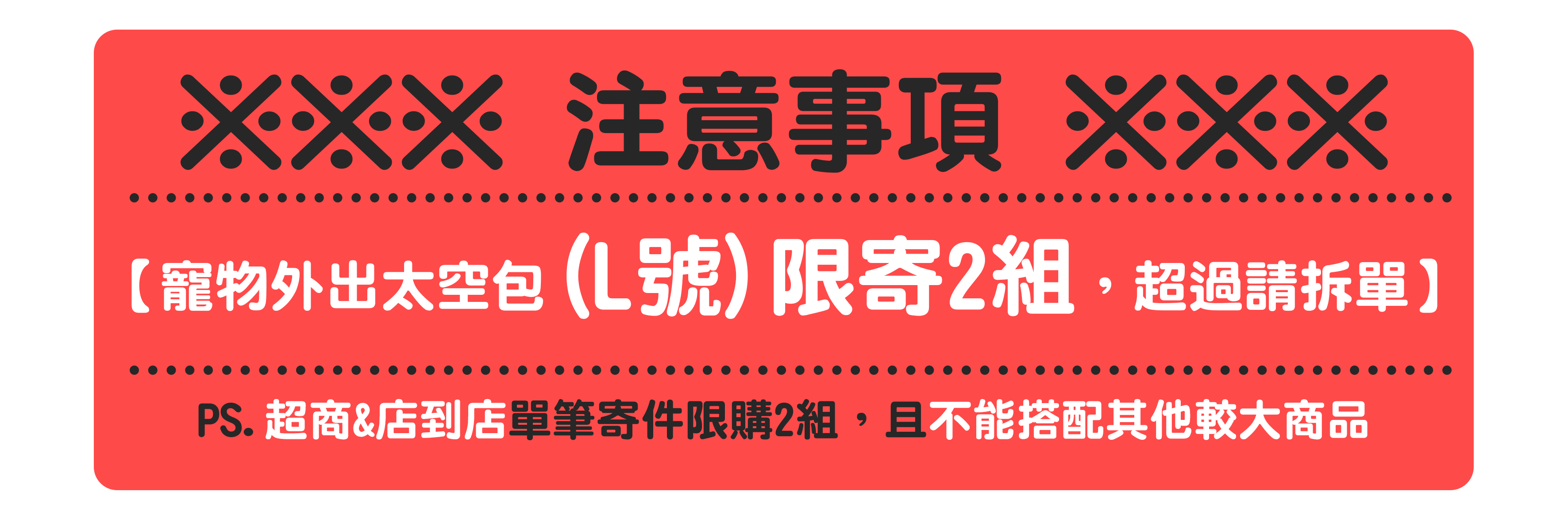 🔻如遇商品購買超量打包體積過大無法超取,需請買家配合更改寄送方式。