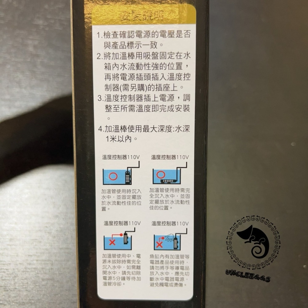 11.選擇搭配使用的加溫器時,必須配合適當控制器和水族箱水量使用,